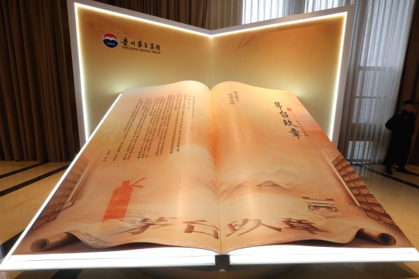 活動現場精心打造了《茅台玖章》主題展廳,展廳以《茅台玖章》的內容為出發點,以書卷為設計元素,通過巧妙的空間布局與光影效果,將《茅台玖章》的精神內涵與書卷的形態完美融合,為到場嘉賓營造了一個沉浸式的文化空間。