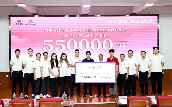 6月23日,貴州茅台公益基金會攜手貴州茅台溫州經銷商開展“中國茅台·國之棟梁”——築夢未來·宏誌助學公益項目,向台江縣民族中學捐贈55萬元,扶智亦扶誌,堅定踐行“國之棟梁”培養承諾。