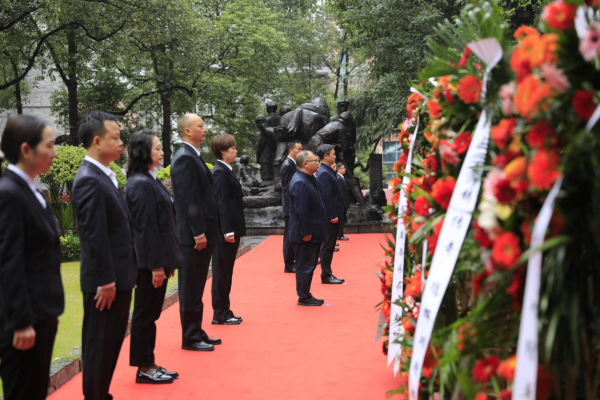 陳華、王wang莉li代dai表biao茅mao台tai,懷huai著zhe崇chong敬jing之zhi情qing向xiang周zhou恩en來lai總zong理li塑su像xiang敬jing獻xian花hua籃lan,並bing整zheng理li緞duan帶dai,全quan體ti敬jing拜bai人ren員yuan向xiang周zhou恩en來lai總zong理li塑su像xiang行xing三san鞠ju躬gong禮li,以yi表biao達da對dui先xian輩bei的de深shen切qie緬mian懷huai與yu崇chong高gao敬jing意yi。中zhong國guo酒jiu文wen化hua城cheng內nei,鍾zhong正zheng強qiang、張旭代表茅台向先輩敬獻花籃,茅台工匠及員工代表向茅台先輩行三鞠躬禮,在莊重儀式中傳承忠孝文化,感恩先輩功績。