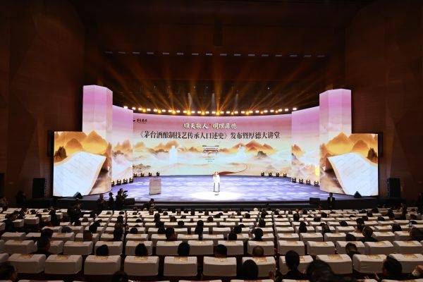 當日下午,作為此次茅台酒節的重要環節,《茅台酒釀製技藝傳承人口述史》發布暨厚德大講堂活動在茅台會議中心大禮堂舉行。中央廣播電視總台主持人朱迅主持。