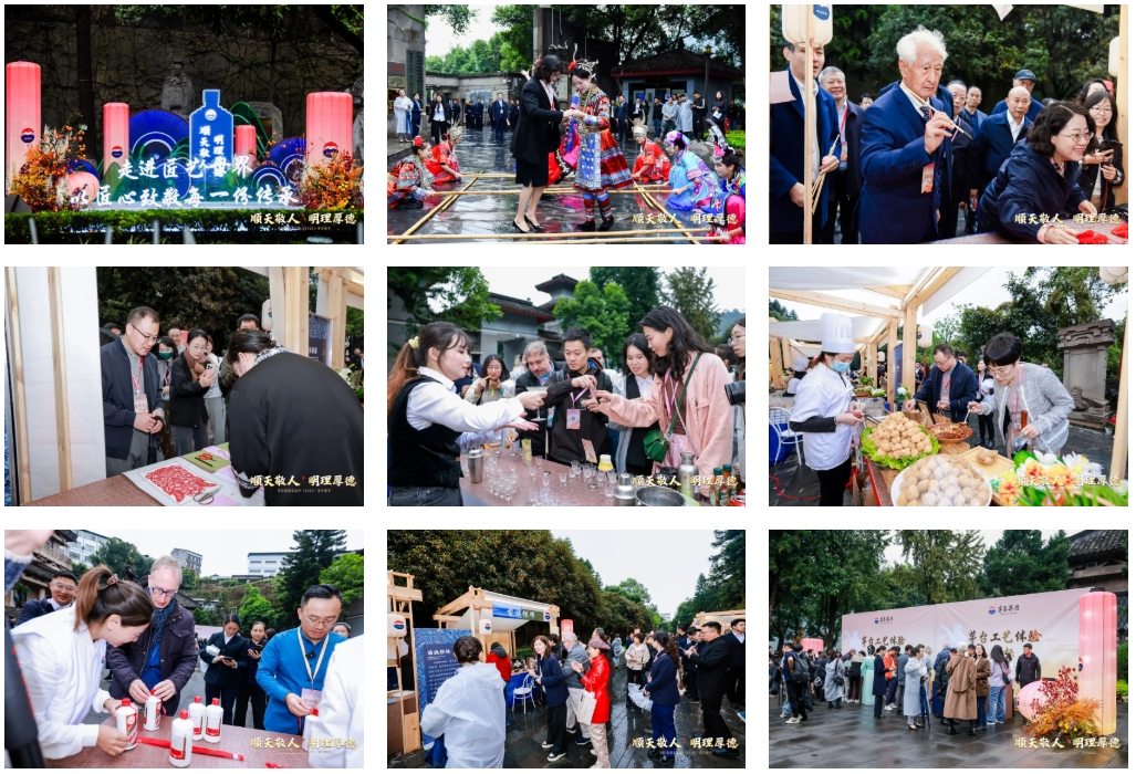 儀式圓滿禮成,茅台中國酒文化城“走進匠藝世界” 主題文化活動隨即精彩啟幕。竹竿舞以竹為器,以舞傳情,為遠道而來的嘉賓送上貴州特色歡迎禮;非遺文化互動體驗區裏,水書祈福、剪紙藝術、蠟染、投“福”納吉、苗族銀飾等項目各具韻味,嘉賓們通過親手參與其中,深切感受非遺的獨特魅力;貴州美食互動品鑒區彙聚菊花茶、重陽糕、蛋包洋芋、遵義鹵味、豆腐圓子等風味,讓嘉賓於味蕾間品味地域特色,盡覽舌尖上的貴州風情。此外,茅台酒工藝互動體驗區通過拴絲帶、貼酒標體驗,讓嘉賓觸摸茅台人刻在骨子裏的嚴謹與匠心;“數字氣味聞香區”借助科技力量,讓茅台酒香穿屏而來,為嘉賓開啟別樣嗅覺之旅;茅台特調品飲區打破傳統邊界,融合不同地域特色風味,解鎖茅台的多元口感。